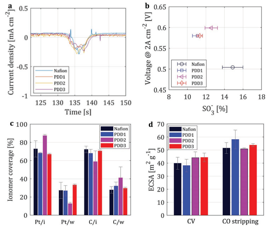 圖2. CO置換計算磺酸根和離聚物覆蓋率(Adv. Energy Mater. 2022, 2201063)